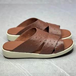 Hermes Brown Leather Pharaon Slides-850-2